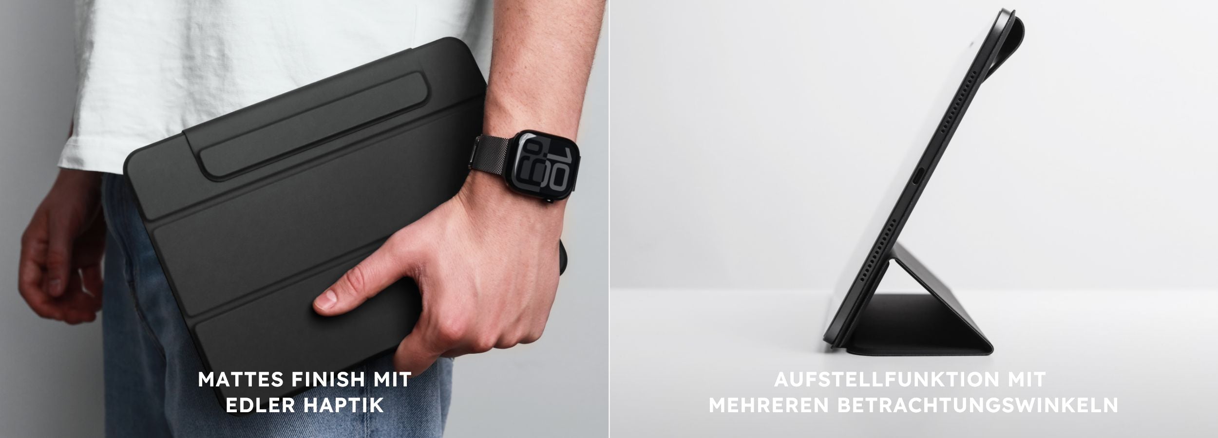 | Foldable Folio ist unser elegantes iPad Folio für smarte Funktion und stilvollen Schutz. Die samtige Außenseite verleiht dem Case eine edle Haptik und schützt zuverlässig vor Fingerabdrücken und Schmierflecken. Innen sorgt ein besonders weiches Futter dafür, dass dein iPad rundum vor Kratzern und Abnutzung geschützt ist. Dank integrierter Magneten kannst du dein iPad in verschiedenen Winkeln aufstellen – ideal zum Schreiben, Lesen oder Streamen. Und natürlich wacht dein iPad automatisch auf, sobald du das Case öffnest, und geht in den Ruhemodus, wenn du es wieder schließt. Mit der integrierten Klapplasche bietet es deinem Smart Pencil einen sicheren Platz – ganz ohne Verrutschen, selbst unterwegs. Foldable Folio ist schlank, leicht und schützt sowohl die Vorder- als auch die Rückseite deines iPads – ohne aufzutragen. |